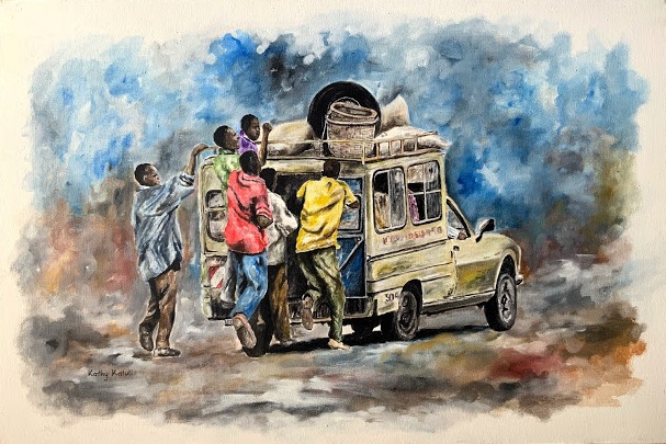 I live and work in Nairobi, Kenya from my home studio. My experiments with different media resulted in my use of many techniques when creating watercolour, acrylics, textured paintings and paper mosaics.